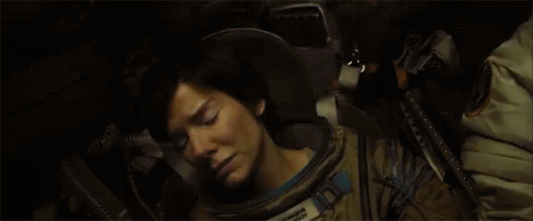 Gravity (Alfonso Cuarón, 2013) is a survival thriller in space that details the fictional events of a doomed mission to the Hubble Telescope. Newbie Ryan Stone (Sandra Bullock) and her mission commander, Matt Kowalski (George Clooney), are the sole survivors when the mission is violently interrupted by a barrage of satellite debris that destroys their ride home and kills the rest of the crew. Kowalski sacrifices himself, drifting out into space in order to give Stone a chance to make it home. He is presumed dead. At her lowest point in the film, Stone gives up and turns down her oxygen in an effort to kill herself painlessly, since there is nothing left for her on Earth.