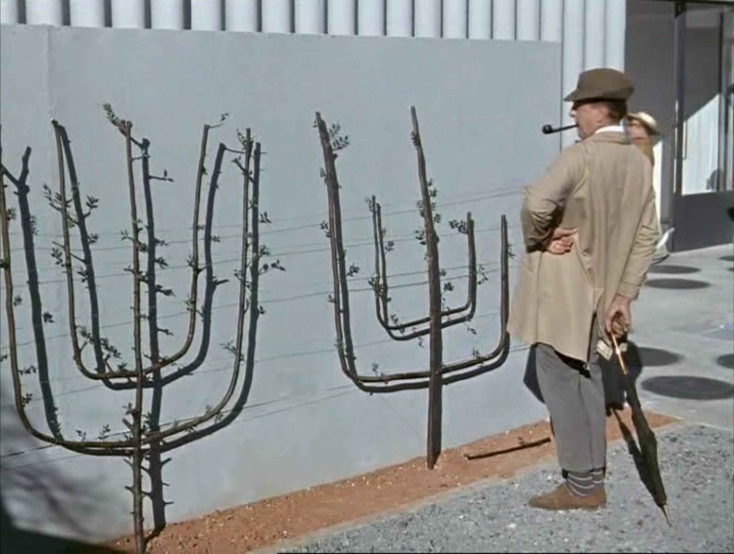 When young Gerard breaks his parents’ decorative vine – which looks as unnatural as the house itself – Hulot attempts to cover his nephew’s tracks by making what he believes to be complimentary alterations. This act of improvisation is classic Hulot in its combination of good intentions and mildly disastrous results.