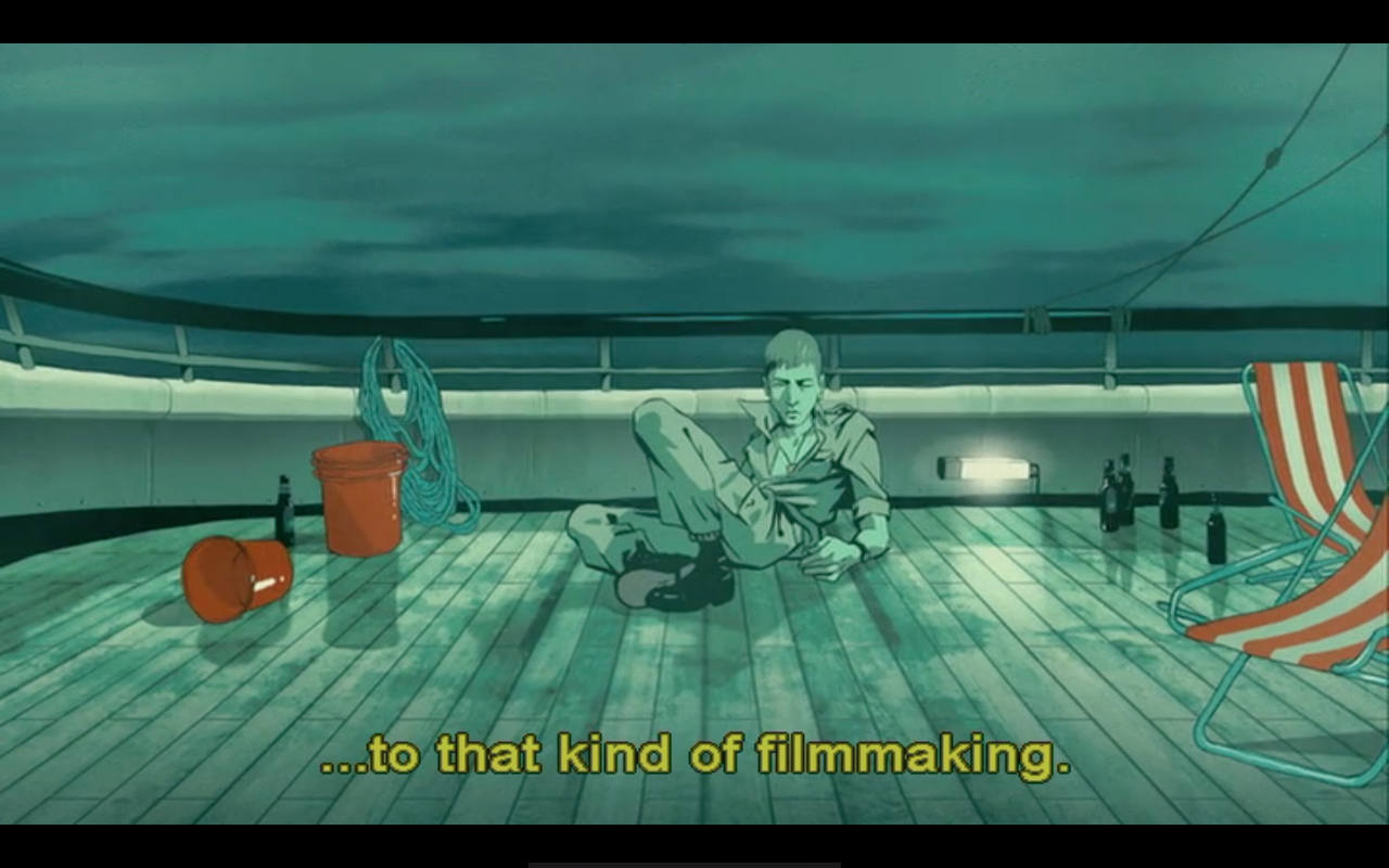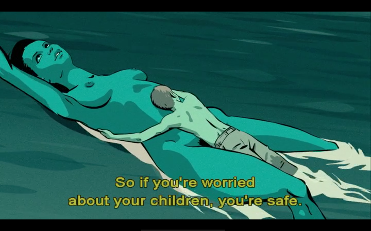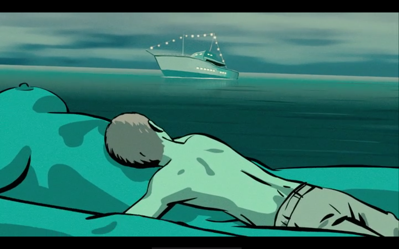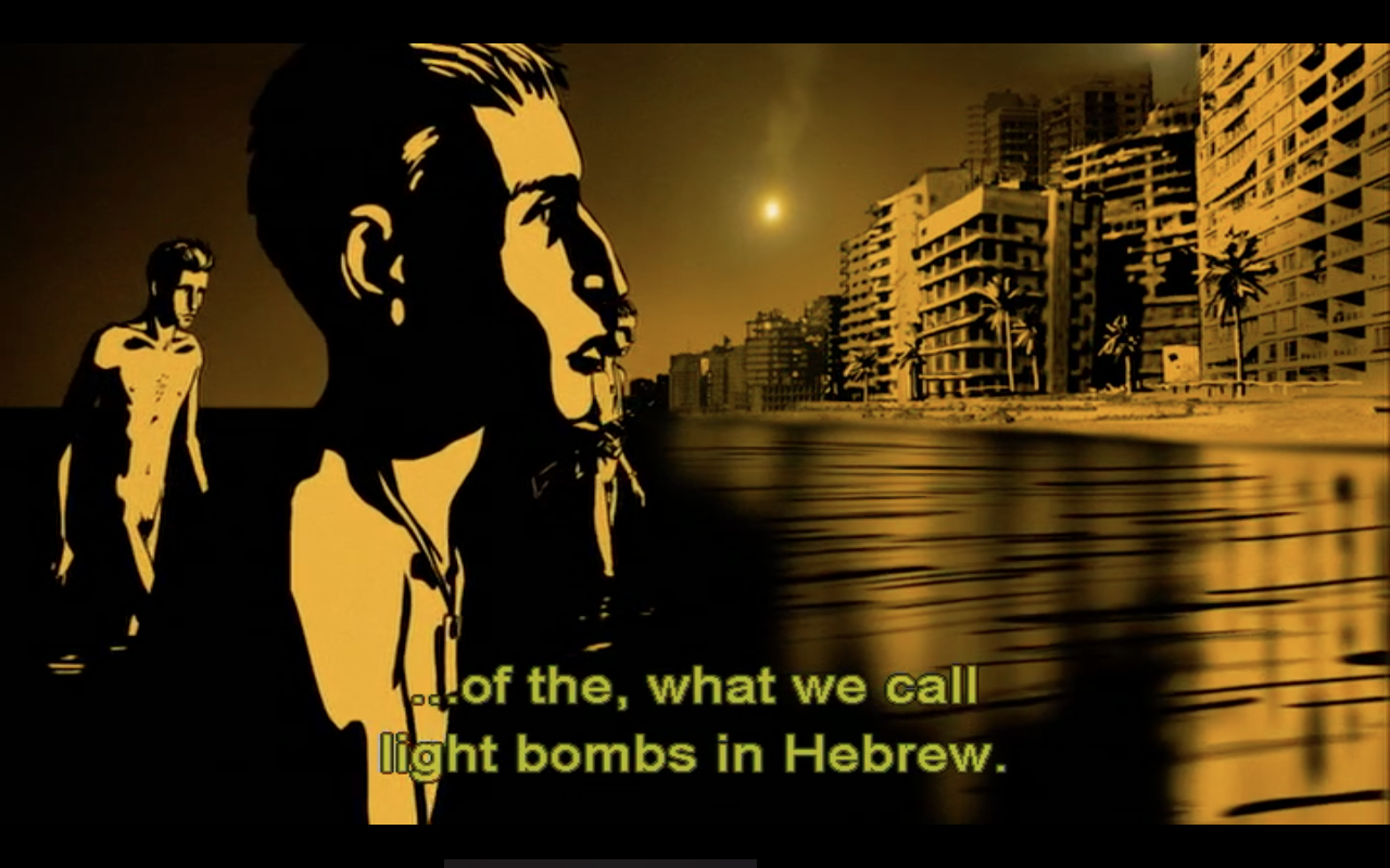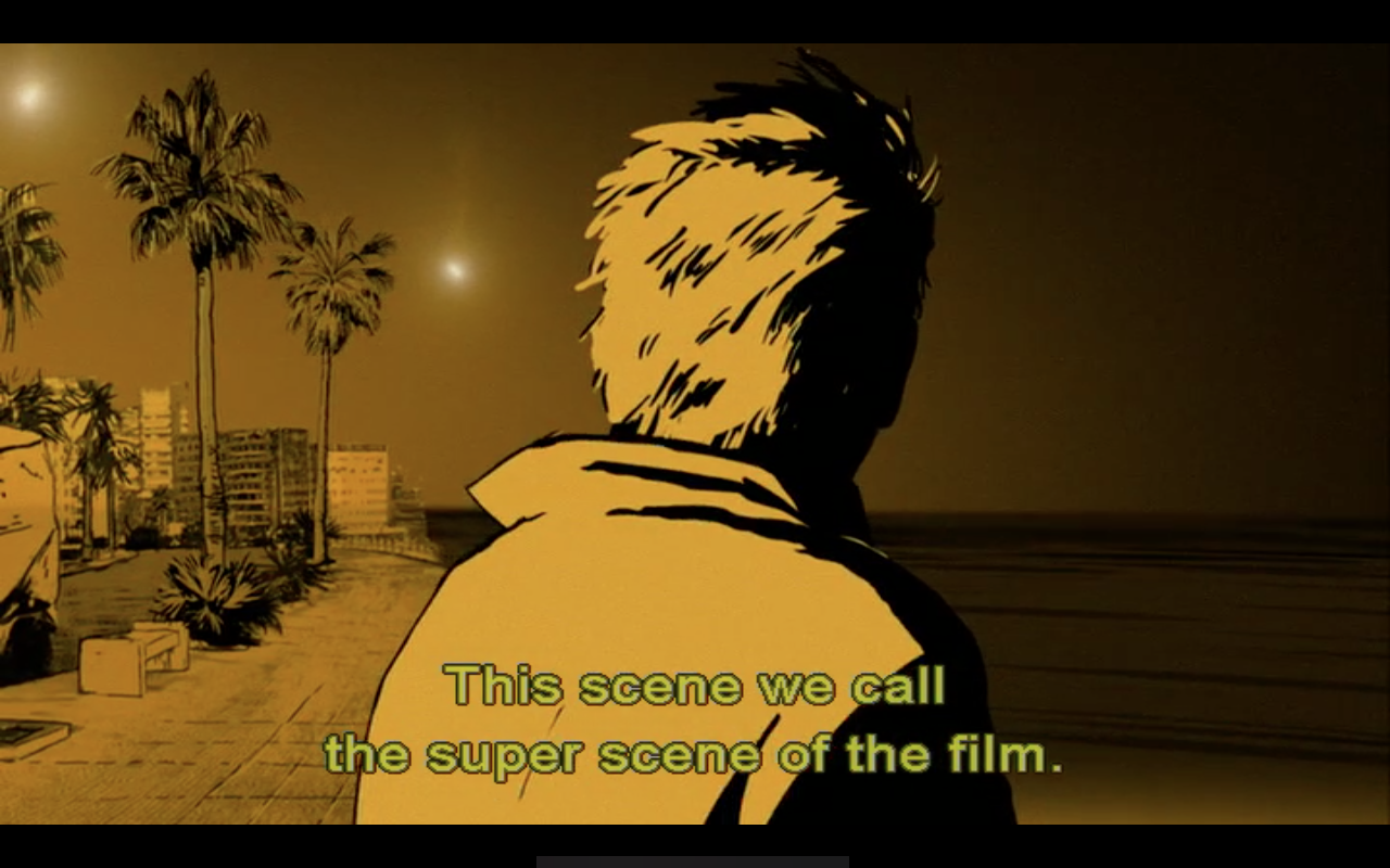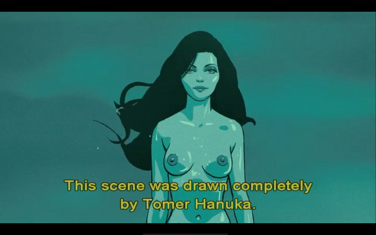 An essential manifestation of these protective mechanisms are the hallucinations that plague many of the characters and exist in a halfway point between memory and dreamscape. Among these hallucinations is the reoccurring motif of the sea and its role as a protection from enemies and a shield from reality. The sea manifests itself in three key scenes, Ari Folman’s first hallucination of the beach, Carmi Cna’an’s dream of the woman, and Ronny Dayag’s escape at sea. These three all reveal the sea to be a place of escape and protection, as Dayag states, a place of “fear [and] feelings.”