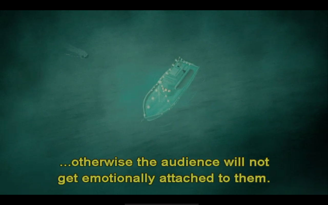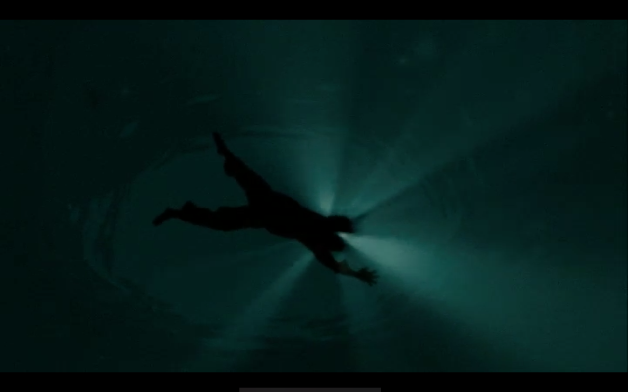 [Figure 23][Figure 24][Figure 25][Figure 26]The surrealism of this journey is demonstrated by the darkness that blurs the landscape and envelops Dayag in Figure 23 and Figure 24. He often is pushed under the water and he describes that the water “enveloped him,” and in this way becomes more closely connected to it and its movements. The after-effects of a bomb being dropped made him feel “the water pulsating” in Figure 25, and likewise his body also pulses with fear. The use of different shot angles, such as the shot from underneath of Figure 26 allows for further blending together of the body with the water.