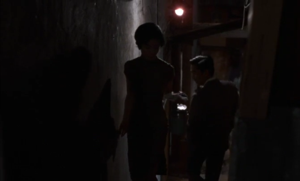 In conclusion, the lighting in the sequences that catalogue the progression of Su and Chow’s relationship is cleverly used to heighten dramatic, narrative, and physical tension; it highlights undercurrents of uncertainty, hesitation, and occasionally sensuality that emotionally charge their interactions, and it allows us as viewers to better see the subtle expressivity of their faces. With this lighting, the tangibility of their interactions becomes at once more fleeting and more real; more satisfying and more infuriating: in these moments of touching or almost touching, the light throws everything into sharp contrast, into a dreamlike world of sharp light and slow, lurking shadow – a murky world in which one can easily fall in love in the shadows and under streetlamps – but also a world in which even silhouettes cast shadows, and the consequences of such actions cannot remain hidden forever.