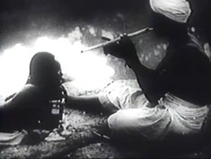 But, of course, even in A Movie’s most coherent segments, there are contradictions. Is this particular segment a paean to the triumphant progress of evolution? Or is it an acknowledgement of the chaotic mass of failures that evolution requires to function? Although the trajectory from sea to land to sky replicates the ascent of animal life on this planet, the reckless stupidity we see here calls our attention to those members of a species whose genetic material is removed from the gene pool. Decades later, the Darwin Awards would remind us of the fact that some sorts of idiocy serve a useful purpose in natural selection. Here, Conner seems to be gesturing in the same general direction. In order for a member of a species to make that first step on to land, a million less-exemplary members of that species had to first behave recklessly, and not pass on their genes.