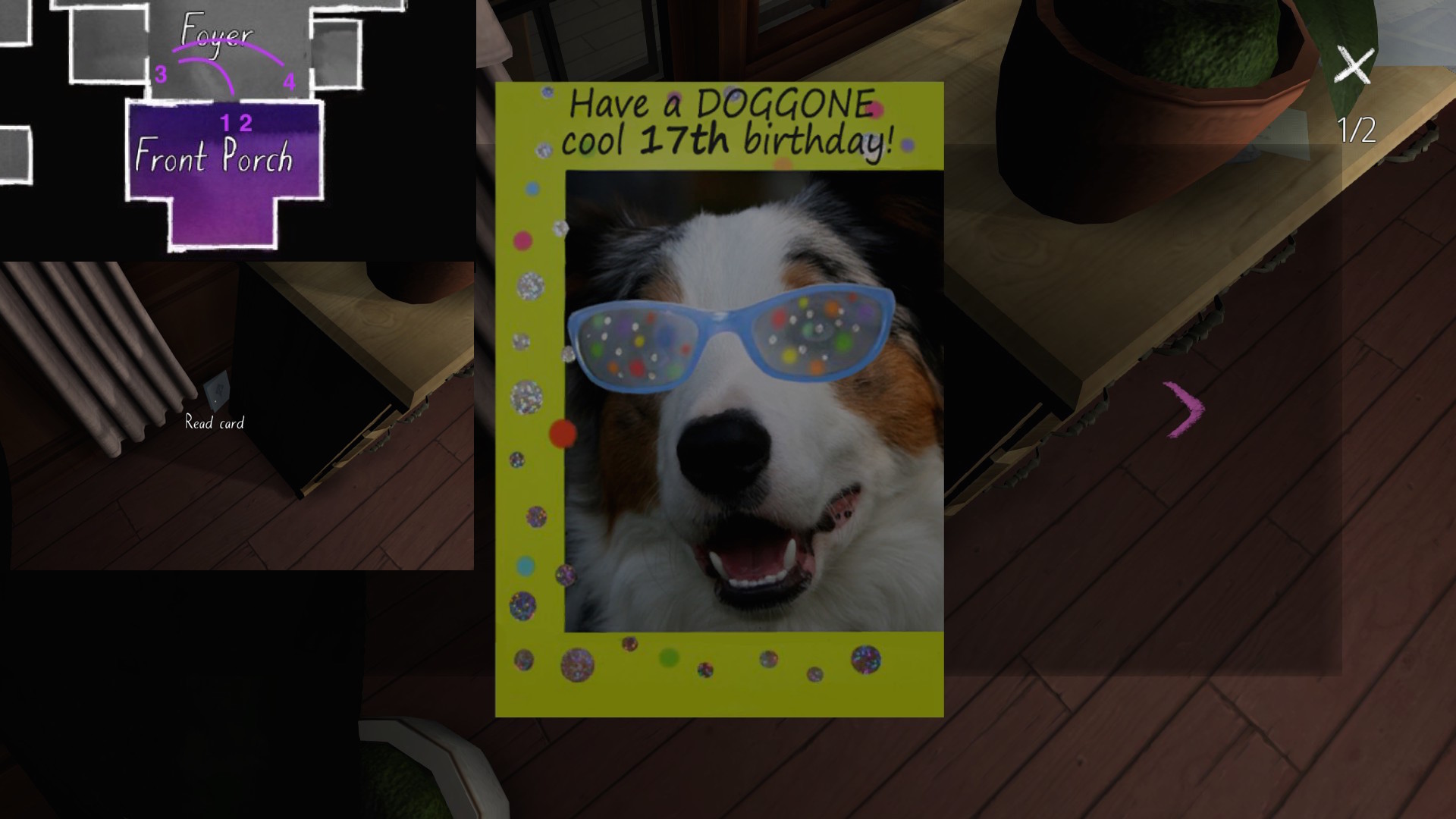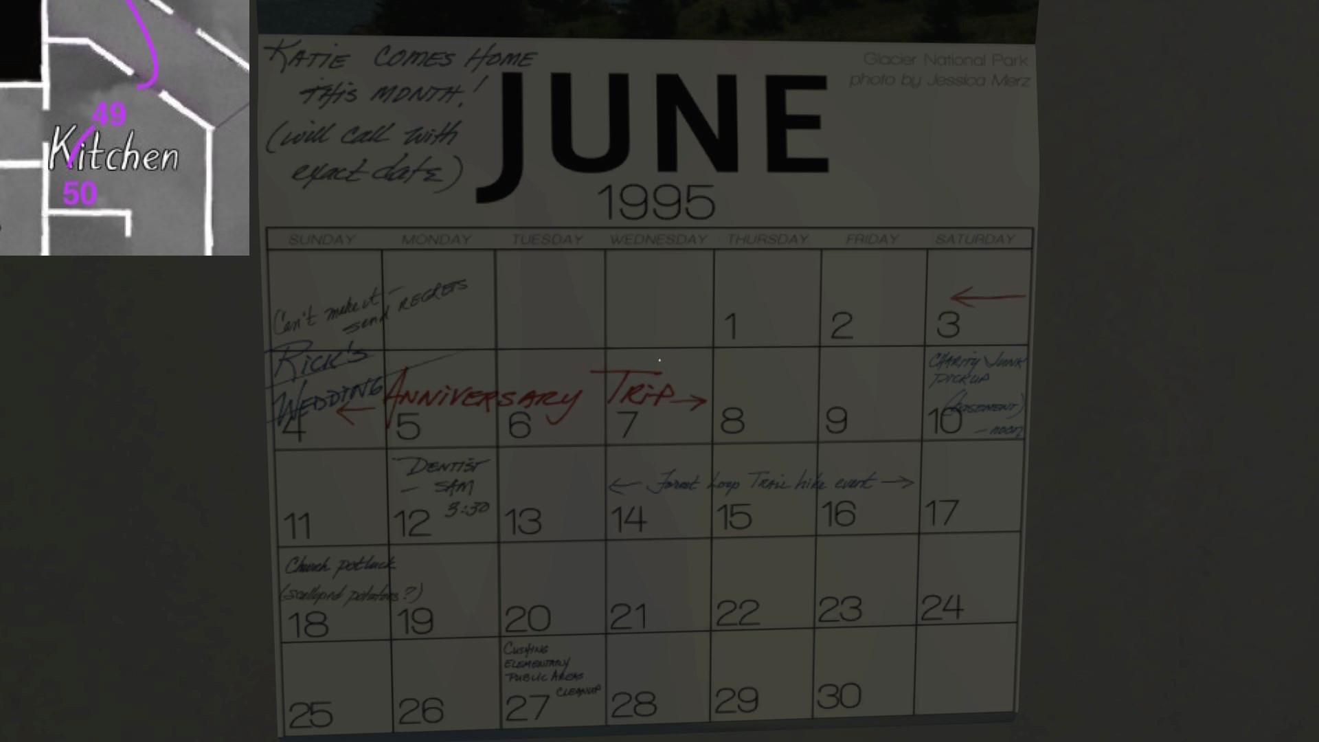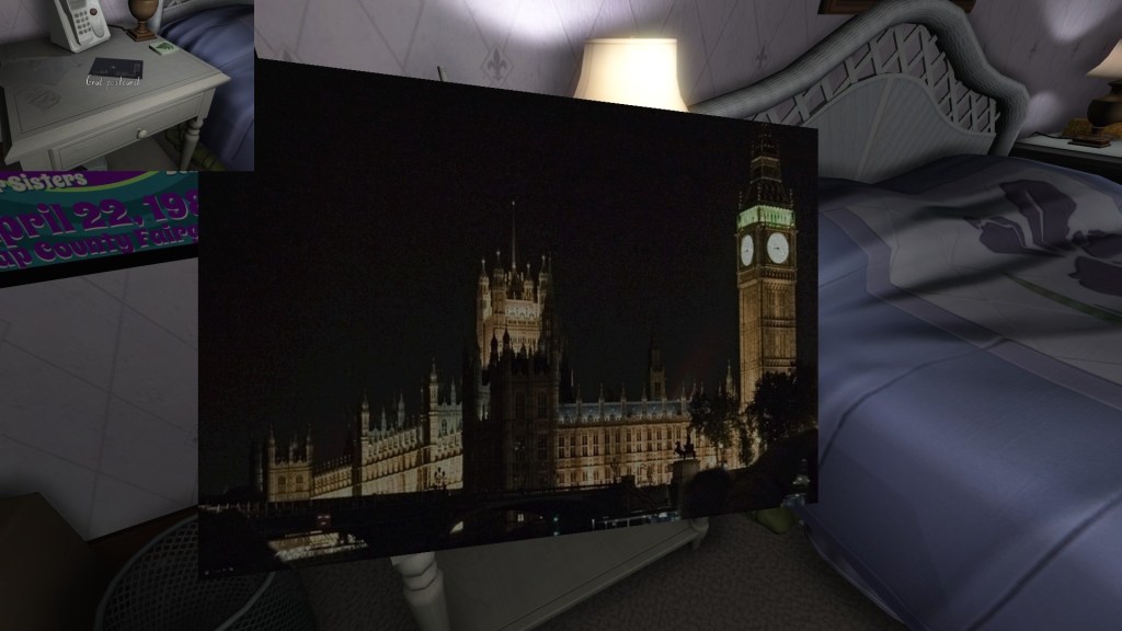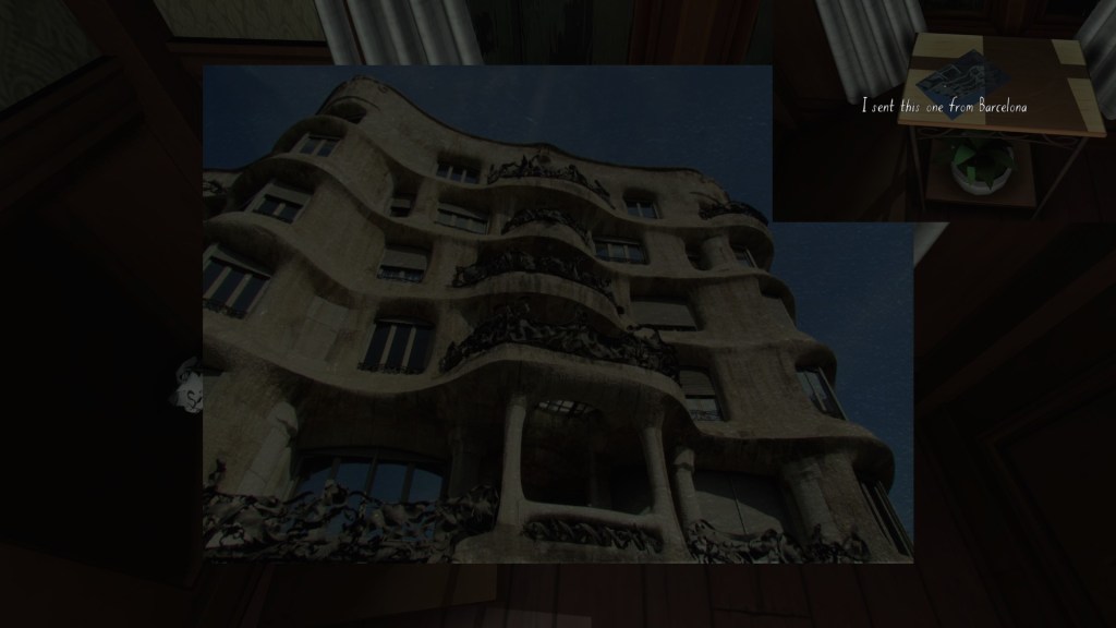 Finally, a series of postcards dotted around the house let us know what Katie was up to this past year, while the family was dealing with its various dramas. I’ve only found four of these, which seems like a small number. Perhaps I’m missing one or two? I’ll update this guide in the future, if I find more.