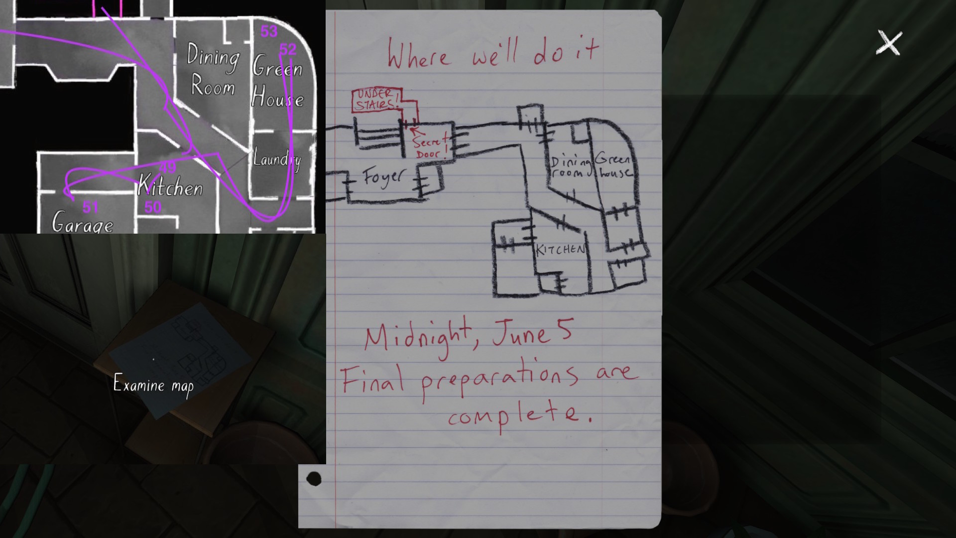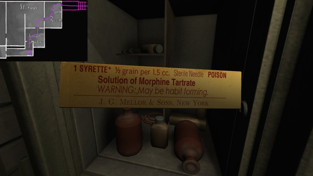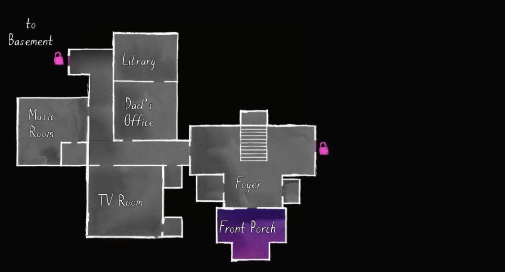 My creation of this guide involves plotting a specific path through the game’s mansion, which in turn involves proposing one specific syuzhet out of many. I’ve broken my guide below into multiple sections, but all of them presuppose a path through the mansion that proceeds as follows: