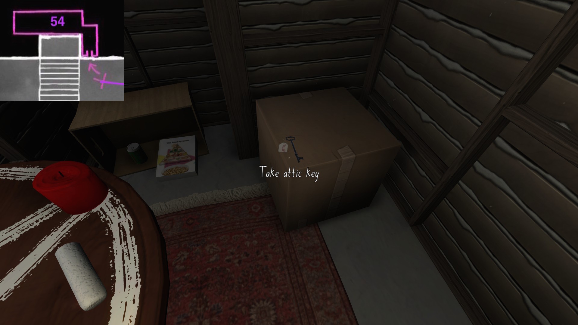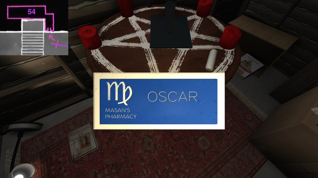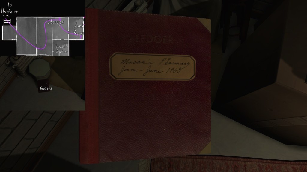 you forgot the pharmacy book in the boiler room from Oscar Masan (in the right corner behind the carton).