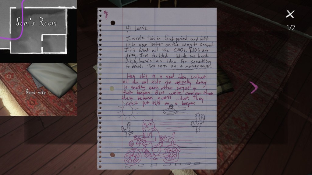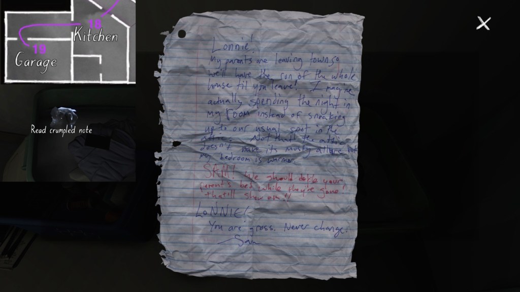 As a result, this is very much the most overt story of Gone Home, with less needing to be carefully teased out from environmental detail and gradually pieced together. This guide will show you where to find all twenty-three of Lonnie’s audio diaries, her five cassette tapesthree Captain Allegra stories, and also a few incidental environmental details. I won’t be spelling out Sam and Lonnie’s story in the captions as much, though, because it is simply not necessary.