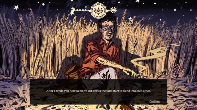 First of all, let me just say: casting players as a hobo in the Depression-era U.S., tasking them with collecting stories they can then swap with other hobos, then watching them gradually stretch into tall tales as they seed them throughout the land, is a fantastic conceit for a game. But it’s one of those things that’s so original, and so specific in its concept, that things may start to fall apart once you try to actually turn it into, you know, a game. This is a tough nut to crack, and Where the Water Tastes Like Wine doesn’t quite get there.